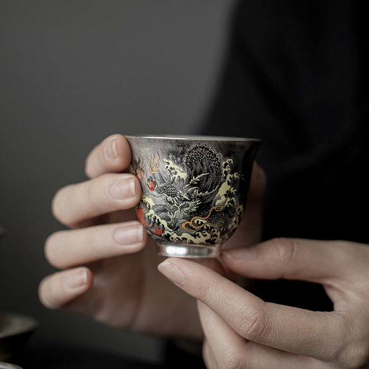 999 Sterling Silver Joyous Thoughts Tea Cup