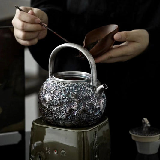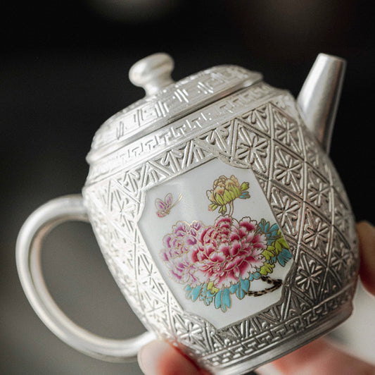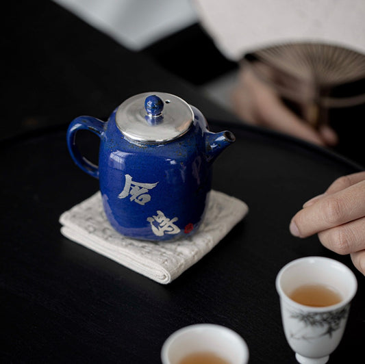 999 Sterling Silver Blue Tea Pot (with Handle)