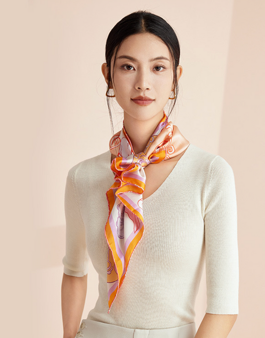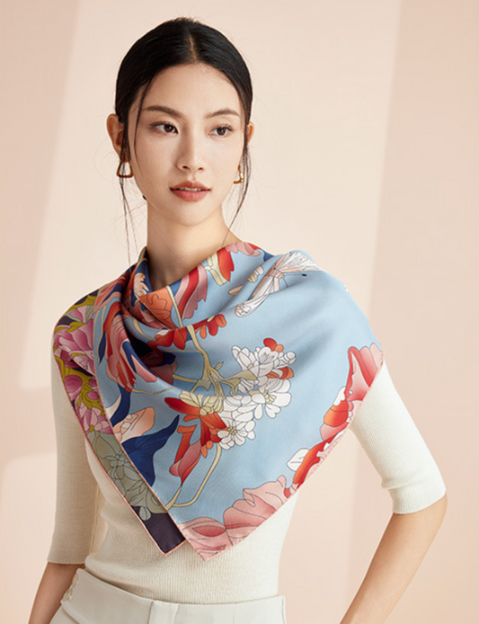 Petal Harmony Mulberry Silk Scarf (60cm)