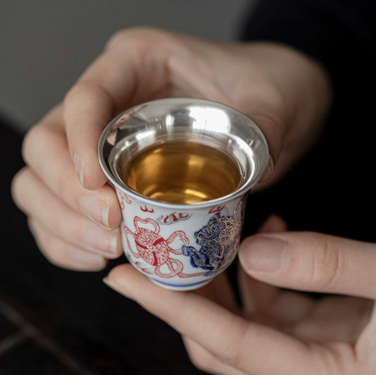999 Sterling Silver Lion Tea Cup (Single Tea Tasting Cup)