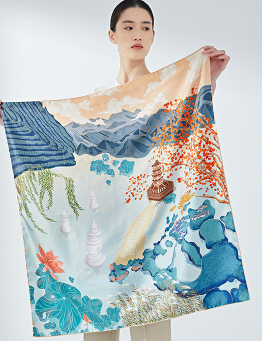 Autumn Lake Reverie Mulberry Silk Scarf (90cm)