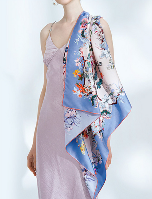 Enchanted Blossom Mulberry Silk Scarf (90cm)