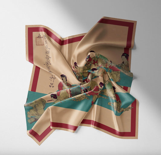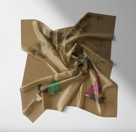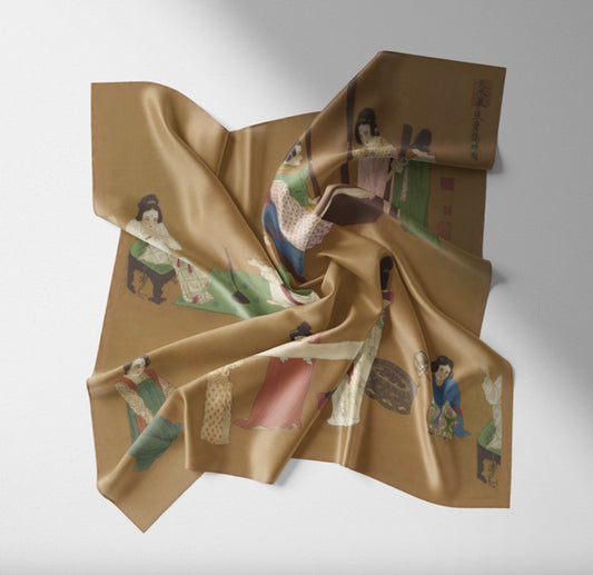 "Court Ladies Preparing Newly Woven Silk" Heritage Artwork Satin Scarf