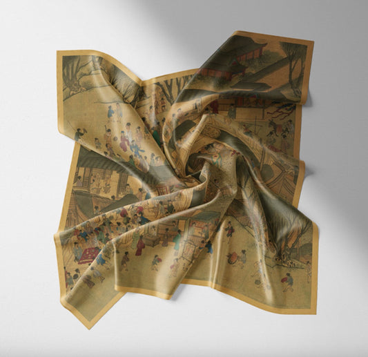 "Along the River During the Qingming Festival" Heritage Artwork Satin Scarf