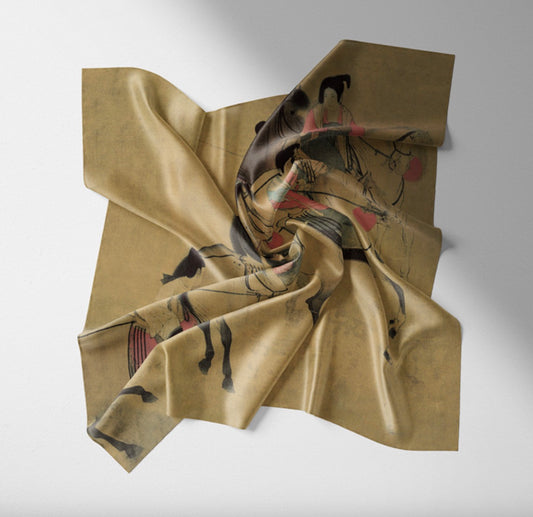 "Spring Outing of Lady Guoguo I" Heritage Artwork Satin Scarf