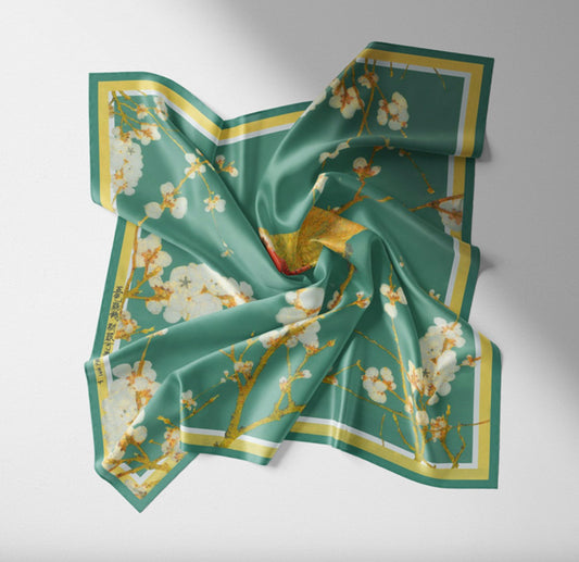 "Fairyland of Peach Blossoms" Heritage Artwork Satin Scarf