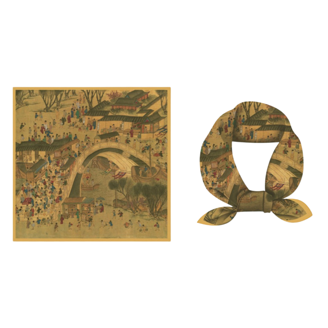 "Along the River During the Qingming Festival" Heritage Artwork Satin Scarf
