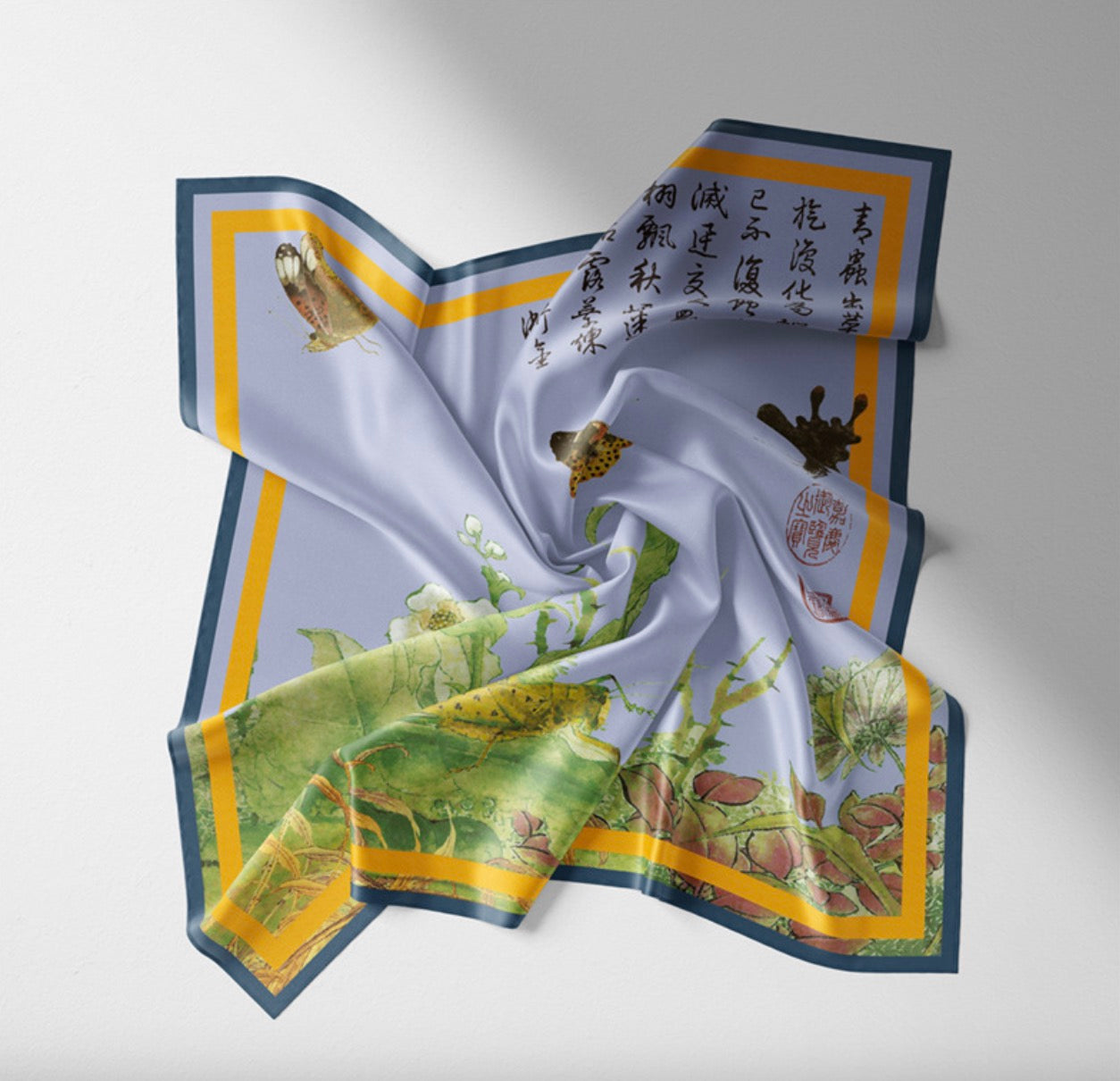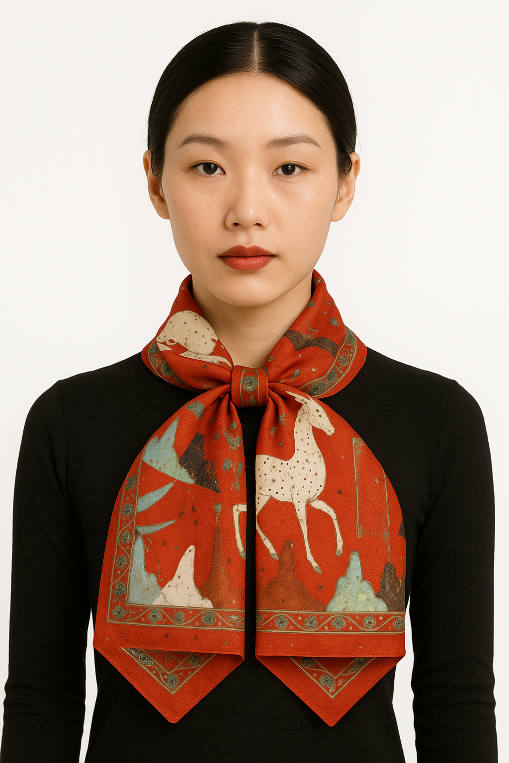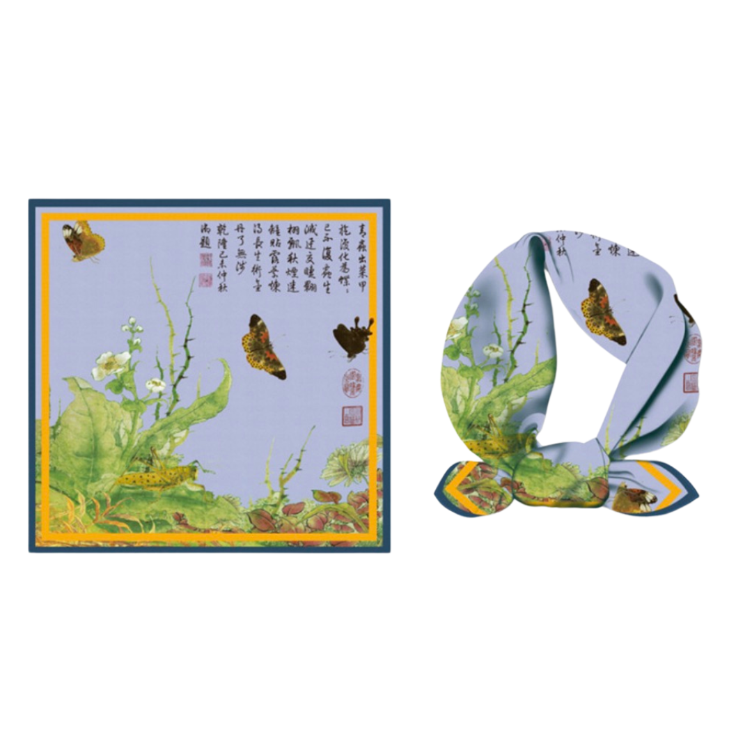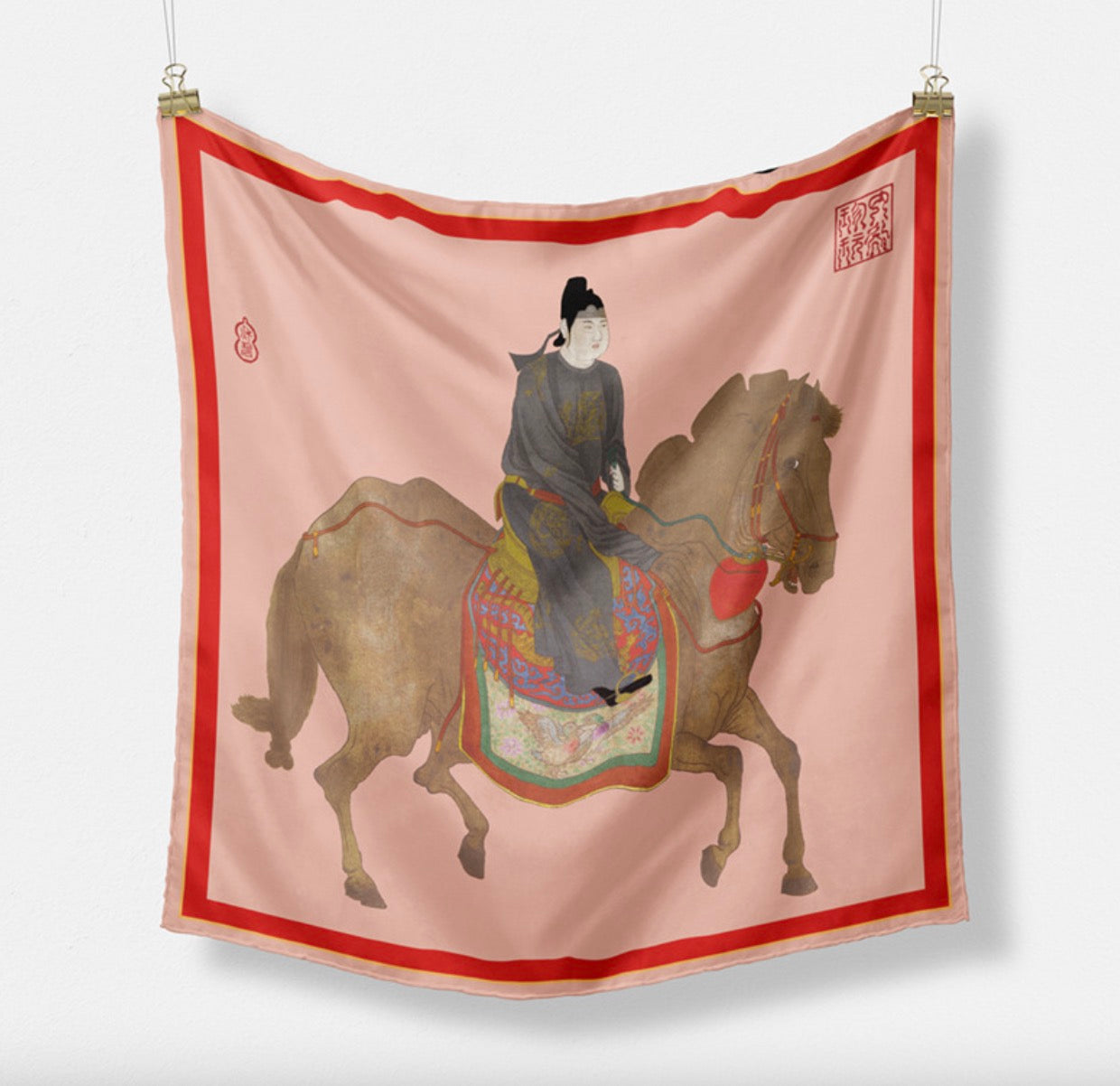 This collection translates the grandeur of Chinese heritage into silk square form. Each scarf draws from ancient scrolls, court scenes, and legends once painted by hand and preserved in time. Rendered in vibrant archival hues on soft mulberry silk, these scarves are not merely worn—they are studied, savoured, and passed down like stories told at dusk.