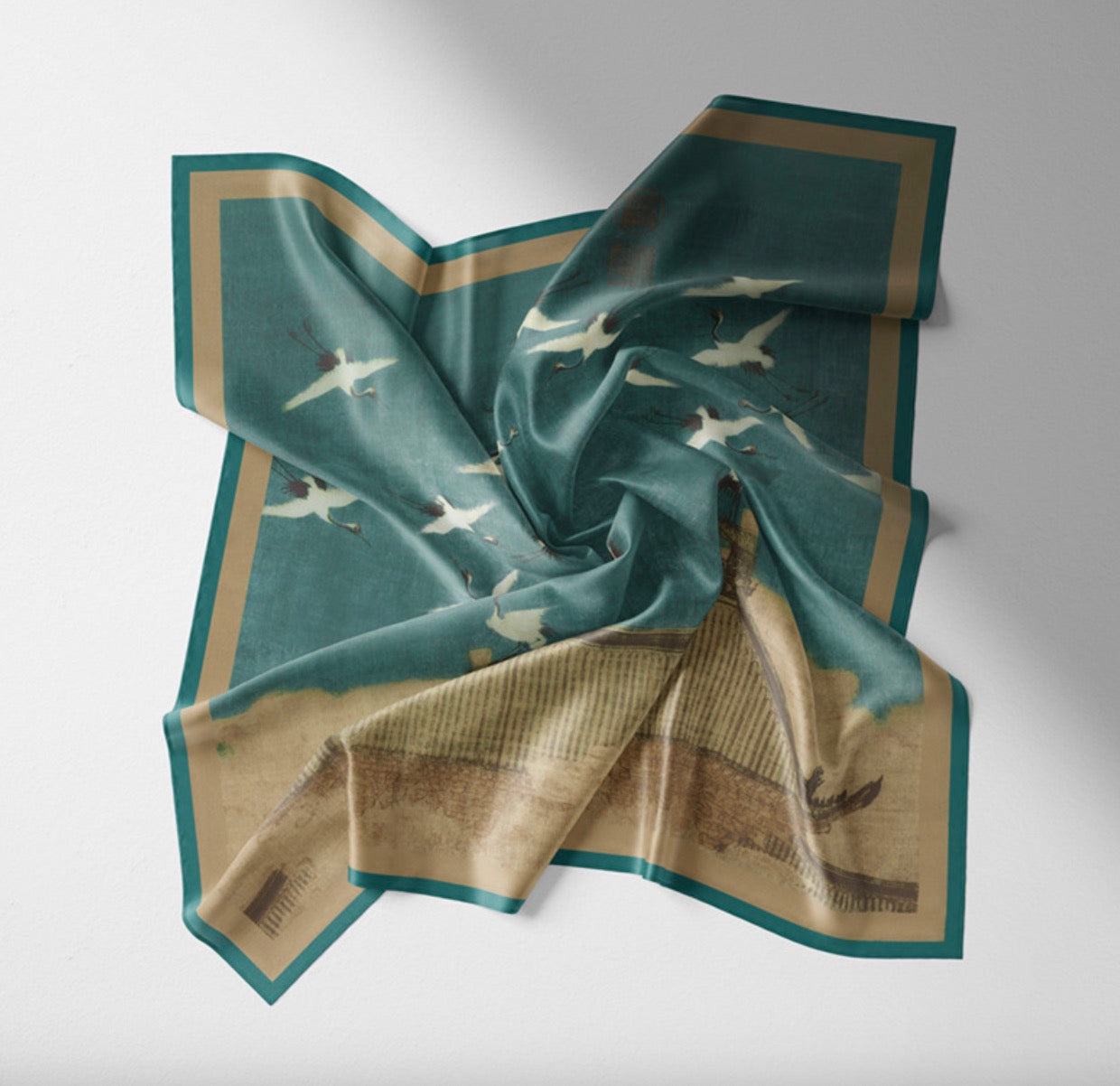 "Auspicious Cranes" Heritage Artwork Satin Scarf