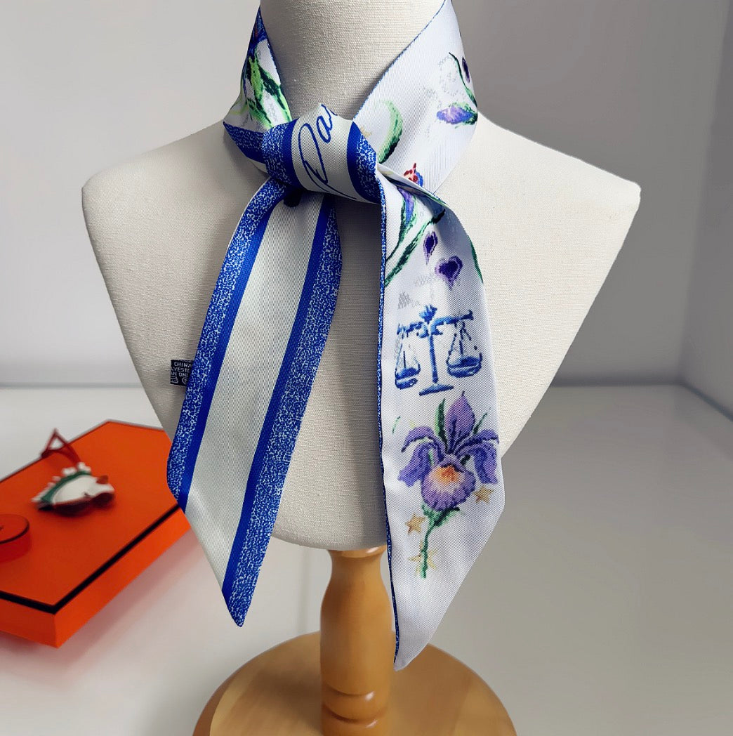 In Chinese tradition, the stars are not distant—they shape character, guide fate, and whisper truths we carry. This collection pairs each zodiac sign with a hand-illustrated floral emblem, bringing cosmic meaning to silk. Double-layered in satin for sculpted elegance, these twillies are not merely accessories—they are talismans of self, to be tied close and worn with intention.