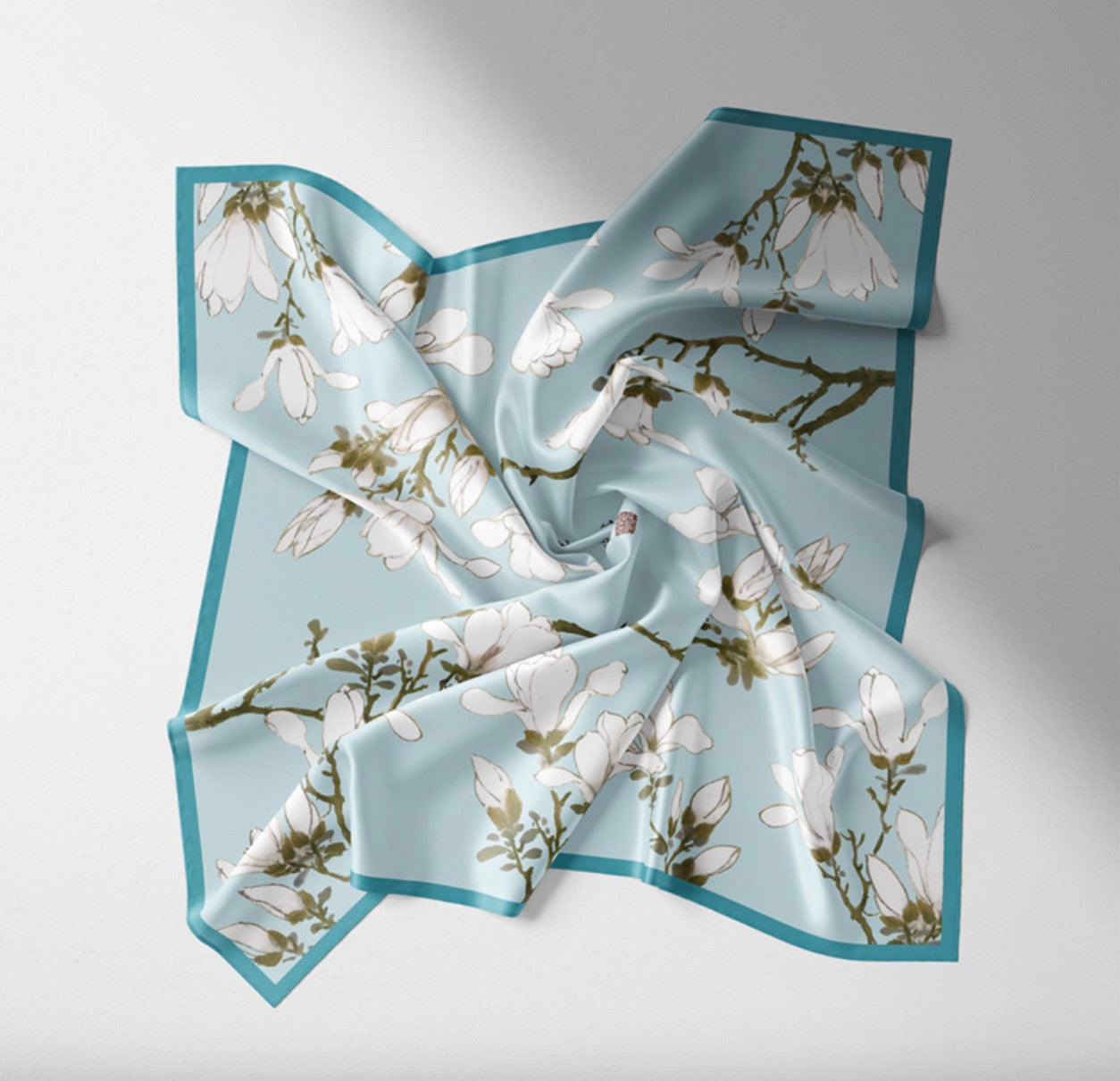Whispering Magnolia Mulberry Silk Scarf (170x53cm)