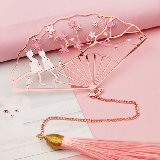 Blossom Serenity Cat Fan Bookmark Gift Set