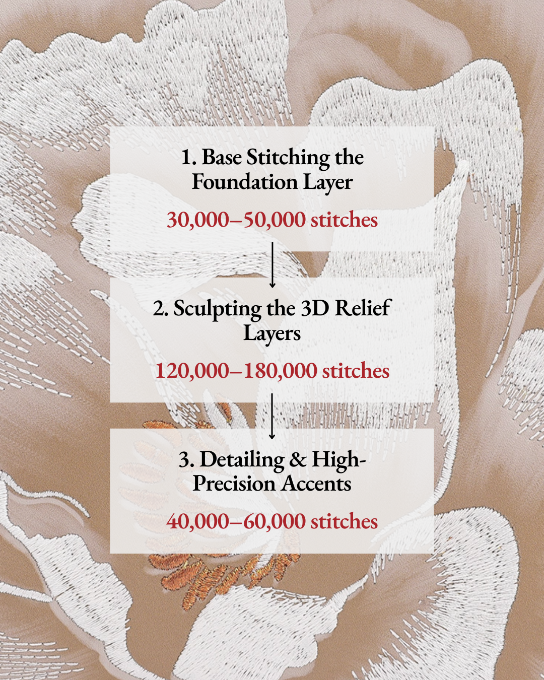 This sort of otherworldly embroidery is only achievable with over 300,000 stitches by hand, an art that less than 1% of leather artisans are capable of.