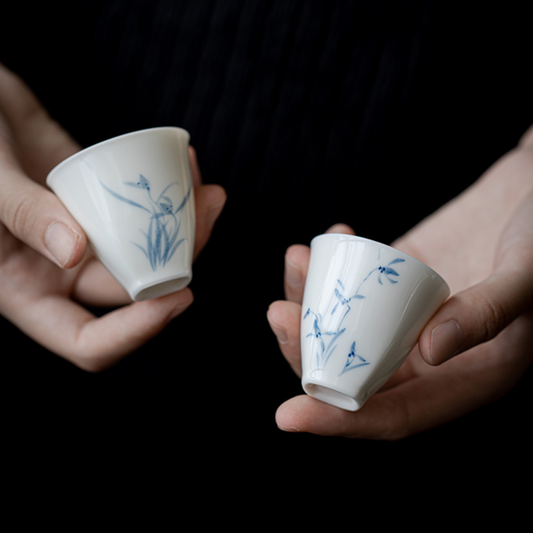 Yue Kiln Hand-Painted Window Orchid Tea Cup
