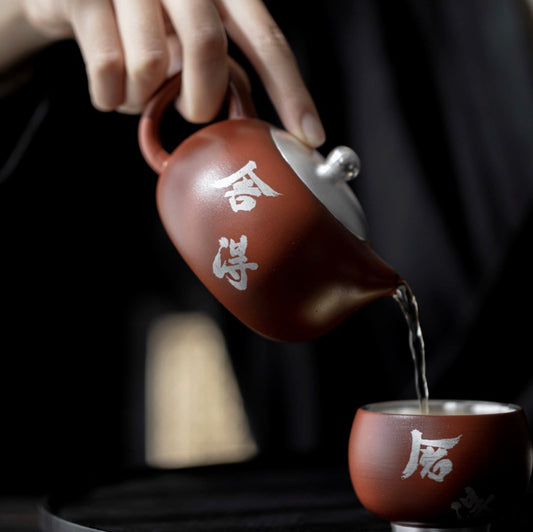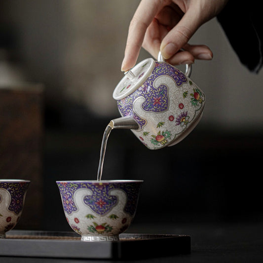 999 Sterling Silver Purple Clay Tea Pot