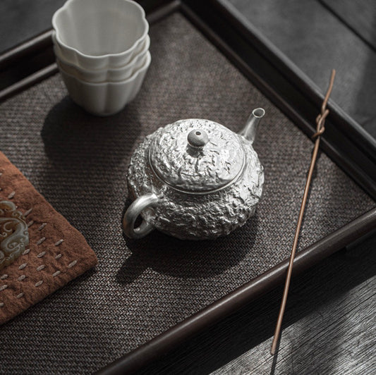 999 Sterling Silver Lychee Tea Pot Set