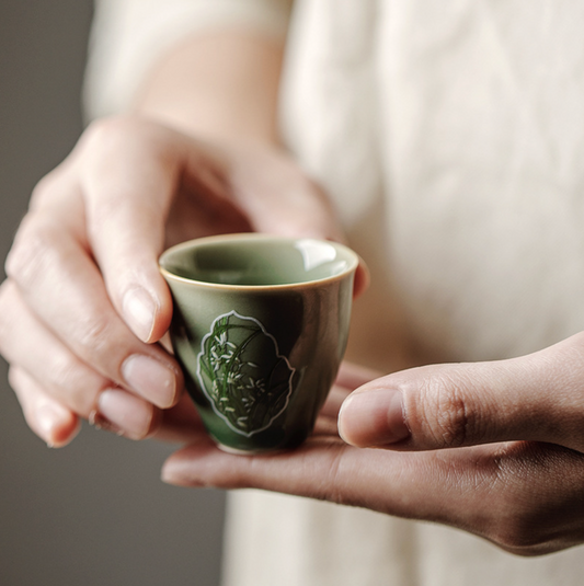 Yue Kiln Hand-Painted Window Orchid Tea Cup