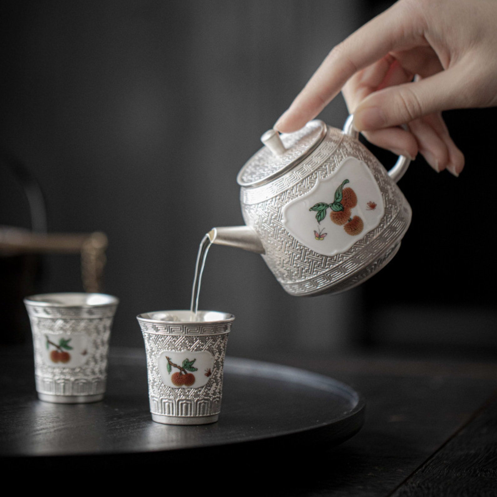 Exquisite Handcrafting: Each cup is meticulously hand-engraved with the intricate texture of litchi skin, celebrating the artistry of traditional Chinese silverwork. The detailed design brings out the elegance of the beloved fruit, which symbolizes joy, prosperity, and abundance.