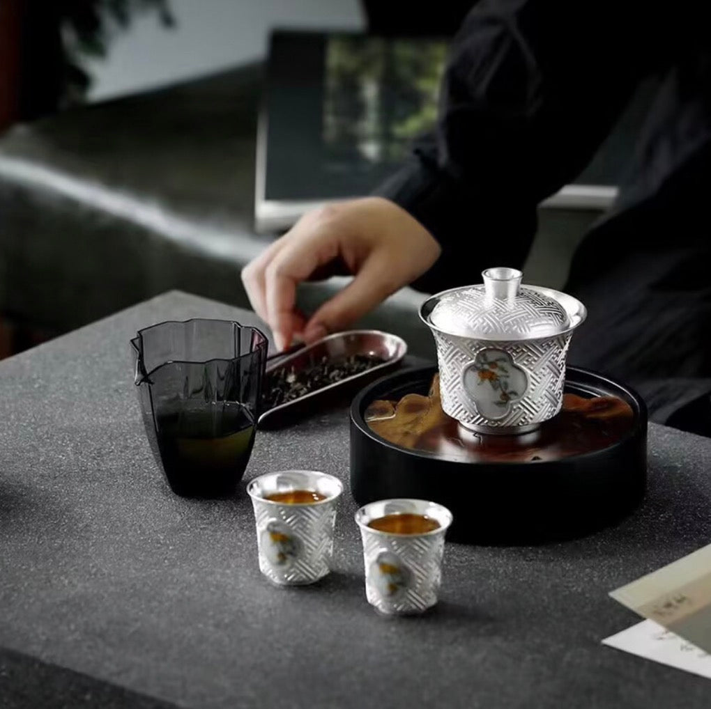 • Exquisite Craftsmanship: Each teapot is expertly crafted from the finest 999 sterling silver, with an intricate persimmon design, combining detailed silverwork with a porcelain inlay that adds elegance and charm to the piece.