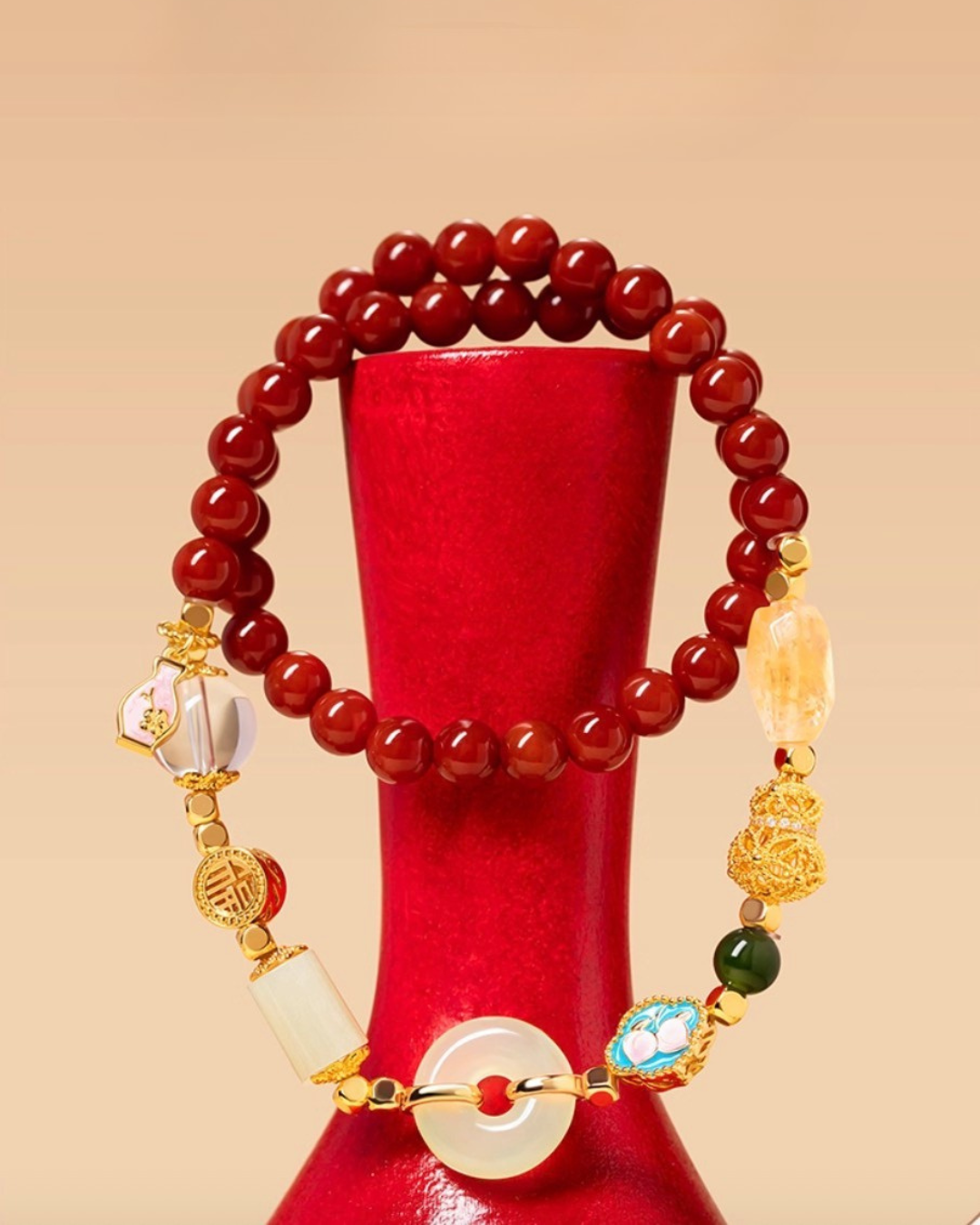 Crafted with natural red agate and auspicious gold-toned elements, this bracelet is designed to be worn close to the wrist as a quiet companion of intention — offering protection, confidence, and blessings through everyday moments.