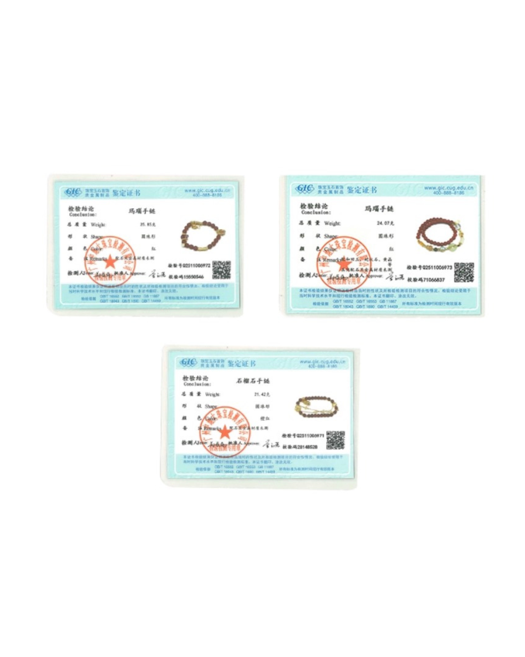 - Select designs incorporate white jade, crystal, garnet, and zircon detailing