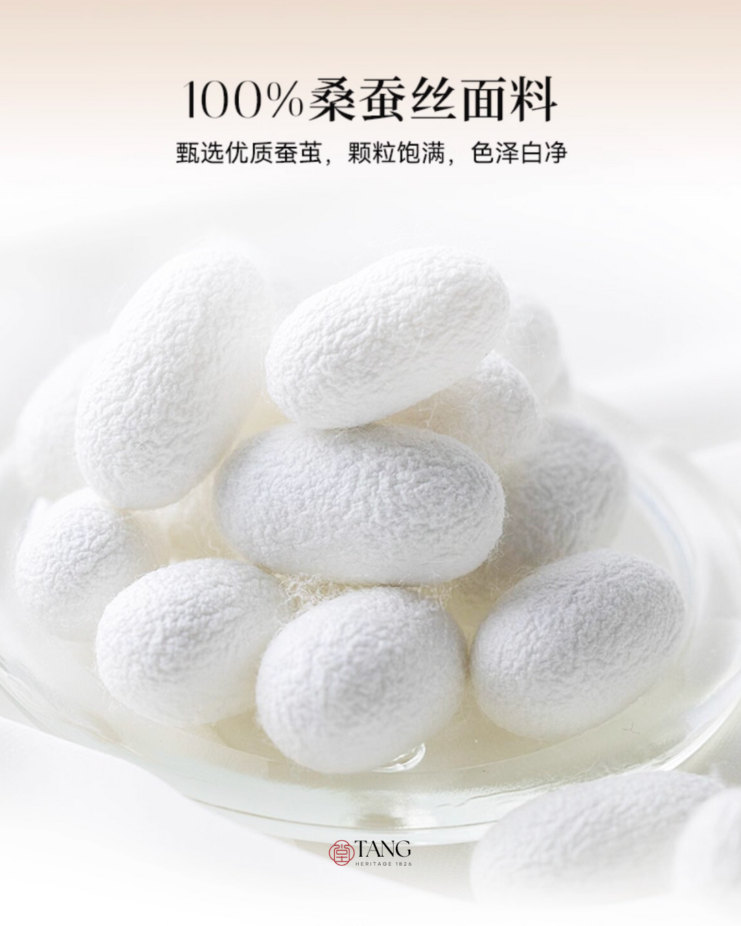 Woven with carefully selected mulberry cocoons (full, pure, and naturally lustrous) the fabric carries a warm, breathable touch that feels tender against the skin.