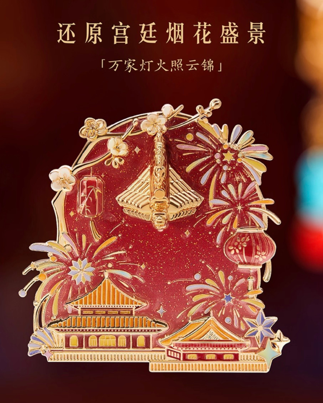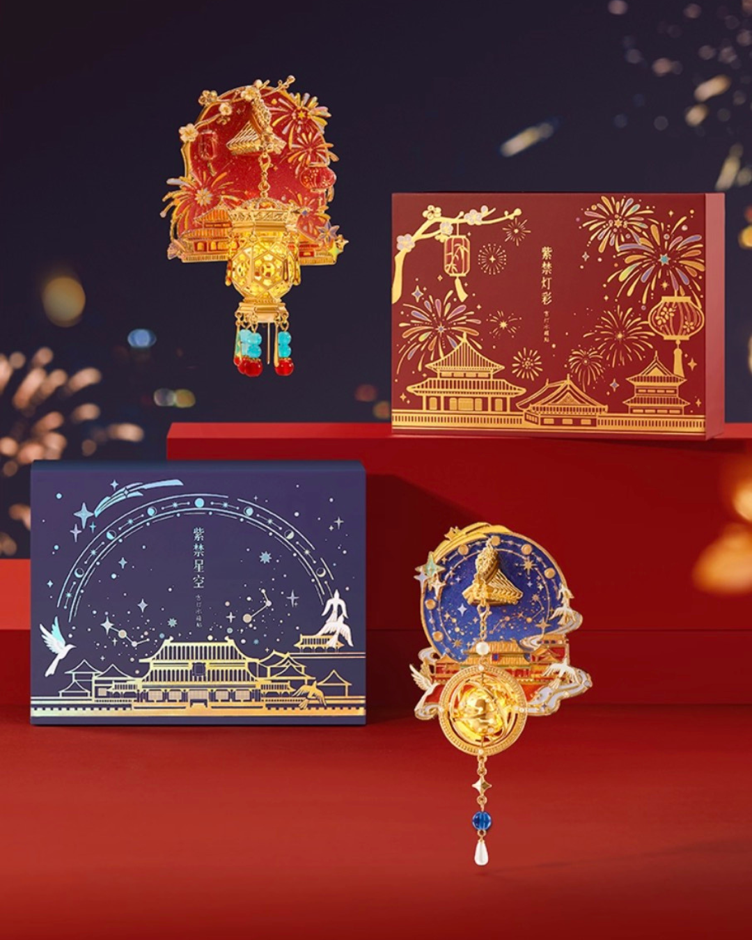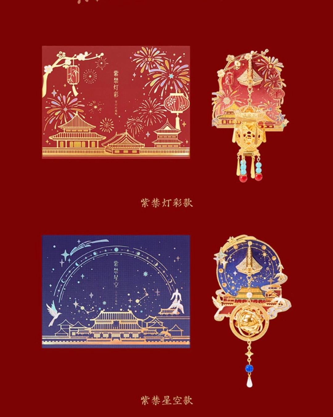 Inspired by palace lanterns glowing against vermilion walls, this variant evokes celebration, reunion, and auspicious beginnings. Gold-toned detailing glimmers like firelight, recalling nights of festival and imperial ceremony within the palace courtyards.