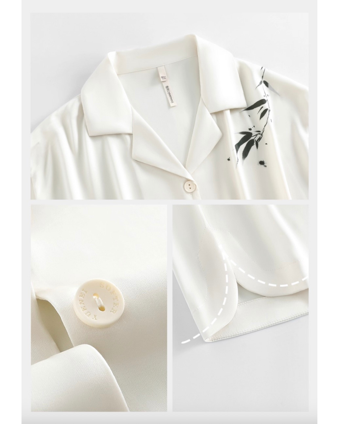 Crafted from upgraded silky fabric, Línn offers a smooth, weightless touch that glides effortlessly across the skin. Its breathable weave enhances comfort through the night, while the structured H-cut silhouette maintains form without sacrificing ease. Each detail — from the curved hem to the lustrous buttons — reflects thoughtful craftsmanship made for tranquil evenings and restorative rest.