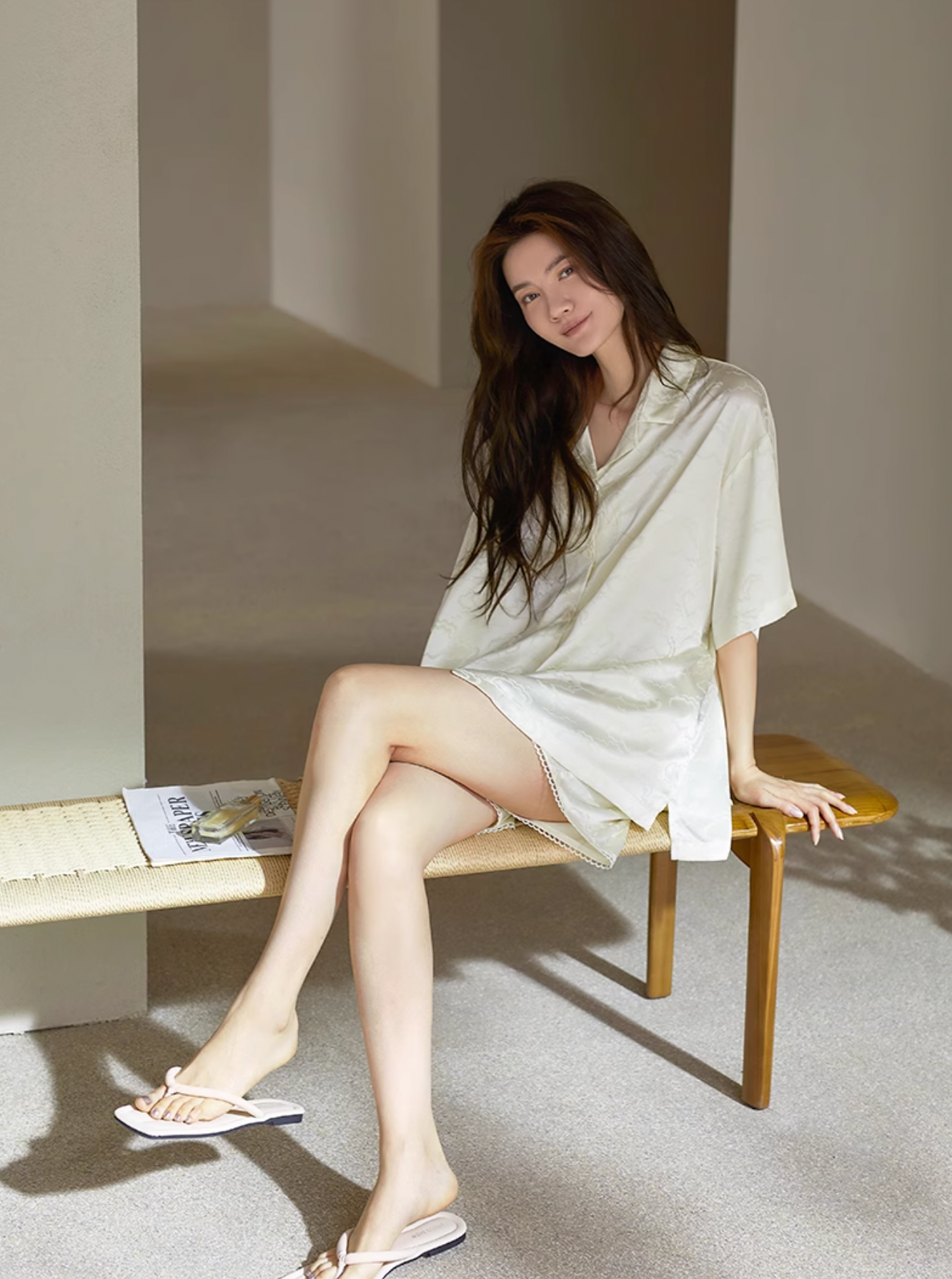 Slip into a dreamlike state of relaxation with our Mèng Ice Silk Pajama Set, designed to bring lightness, breathability, and elegance to your loungewear. Inspired by the soft embrace of summer breezes, this set is crafted from premium ice silk fabric, offering a cooling, silky-smooth touch with a graceful drape. The subtle cloud motif symbolizes serenity and harmony, creating a sense of peaceful luxury. Featuring a button-up short-sleeve top and relaxed-fit pants, Mèng is perfect for warm nights and effortless lounging.