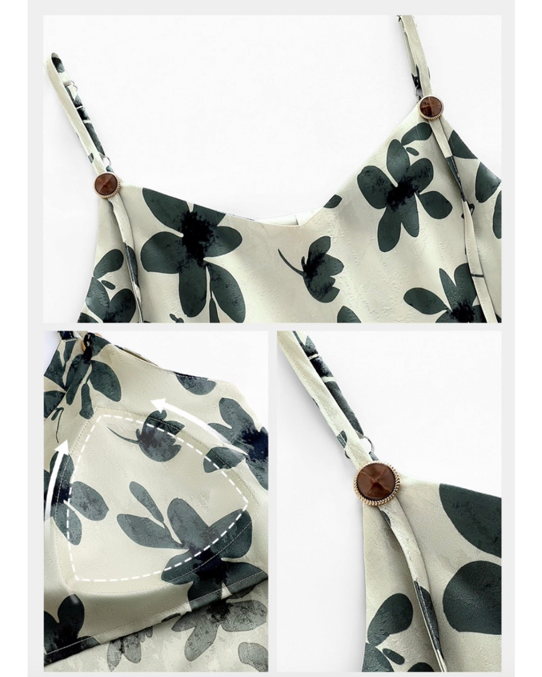 Crafted from a silky, breathable blend that drapes gracefully against the skin, this set brings together softness and sophistication. The adjustable spaghetti straps and relaxed wide-leg pants create an unconfined silhouette, while the floral print exudes understated charm reminiscent of natural brushstrokes.