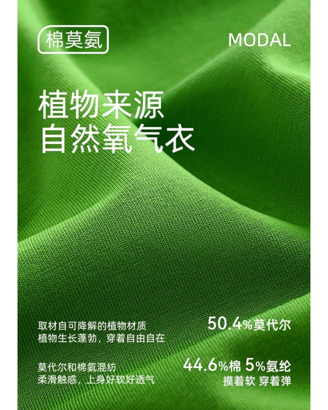 Modal-Cotton Blend – 50.4% modal, 44.6% cotton, 5% spandex for a soft, breathable, and slightly elastic texture.
