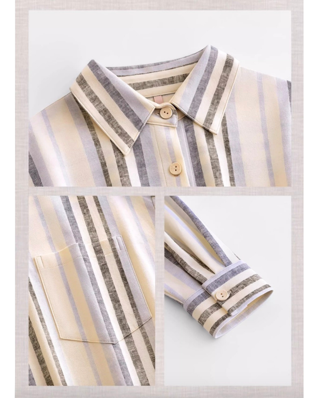 Slip into serene comfort with our Shū Dress — a graceful fusion of softness, simplicity, and elegance. Crafted from Soft Sleep Cotton in a gentle cream-and-grey stripe, Shū envelops you in breathable lightness, making it ideal for slow mornings or quiet evenings at home. The fluid drape and shirt-style design evoke effortless refinement, while its button-down front and side-slit hem bring both movement and ease. Shū embodies the calm rhythm of everyday living — soft, airy, and timelessly composed.