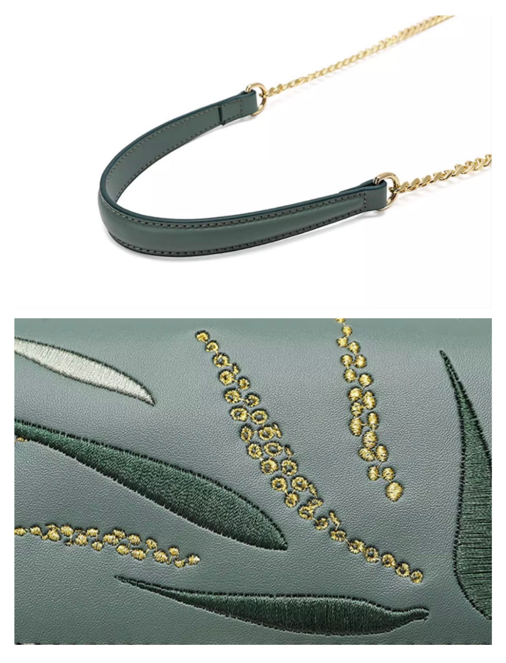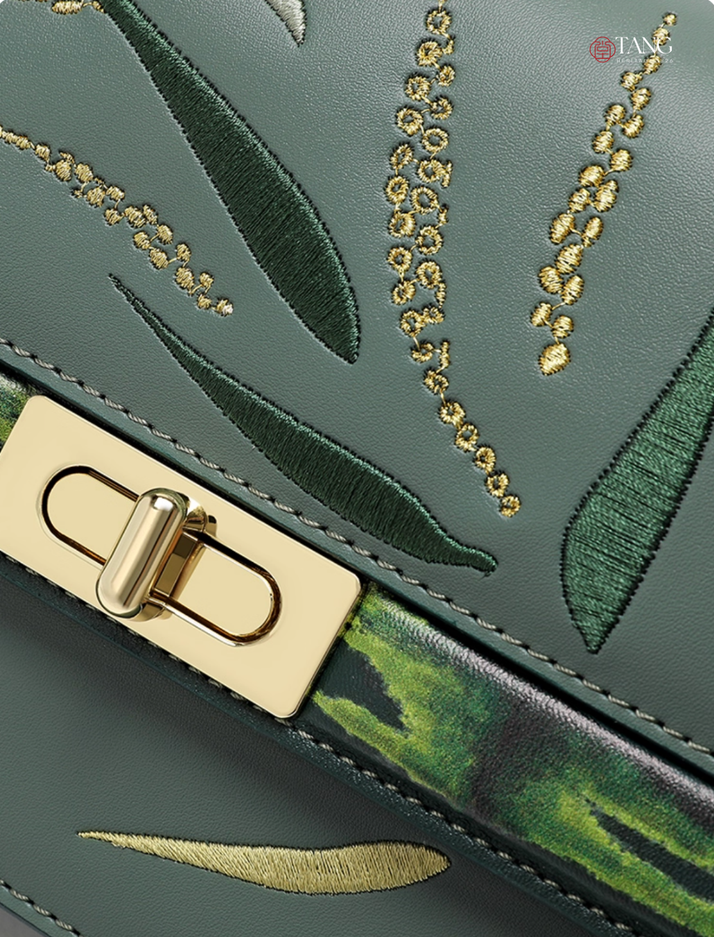 - Color: Cloud pine green, highlighted with bamboo-inspired embroidery in gold and green hues