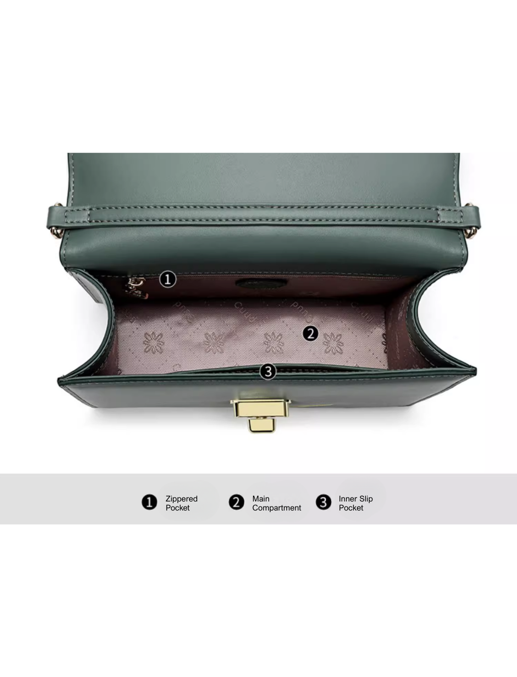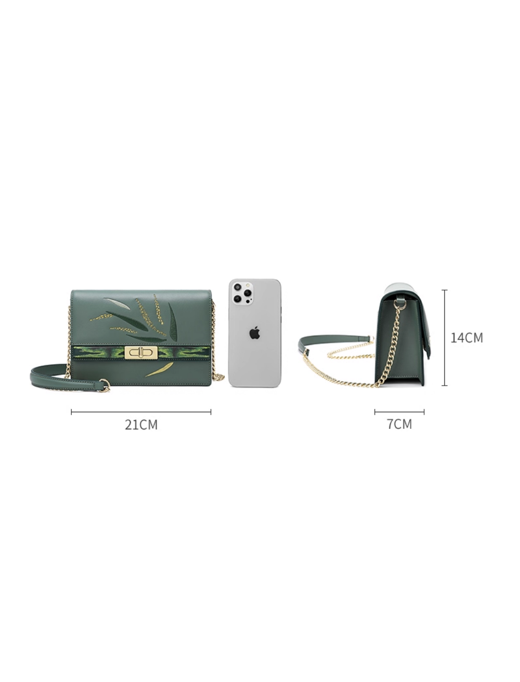 - Elegant chain-and-leather shoulder strap (113cm, fixed length) for comfortable crossbody or shoulder wear