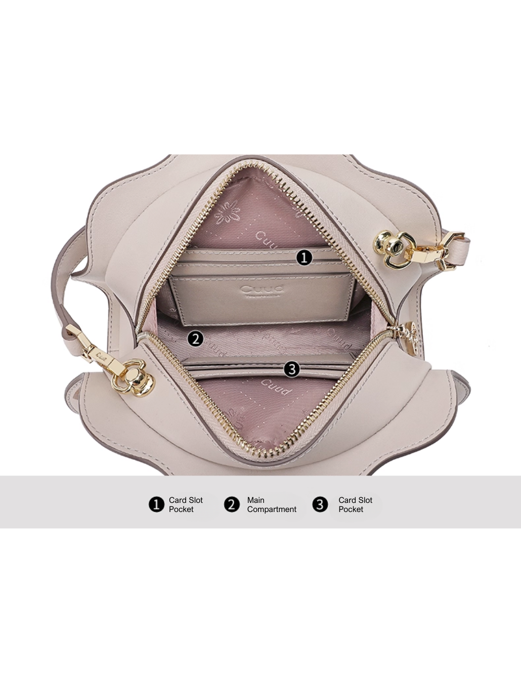 • Spacious interior with card slots and a main compartment for essentials like phone, wallet, and cosmetics