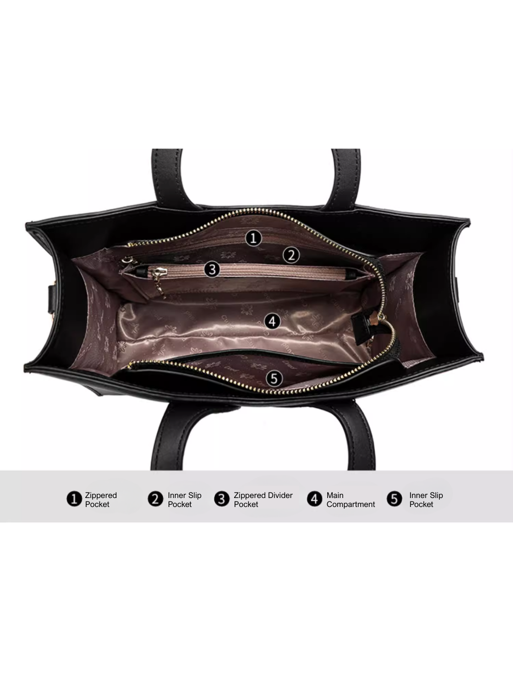 - Spacious interior with zippered compartments, slip pockets, and a large main section for effortless organization