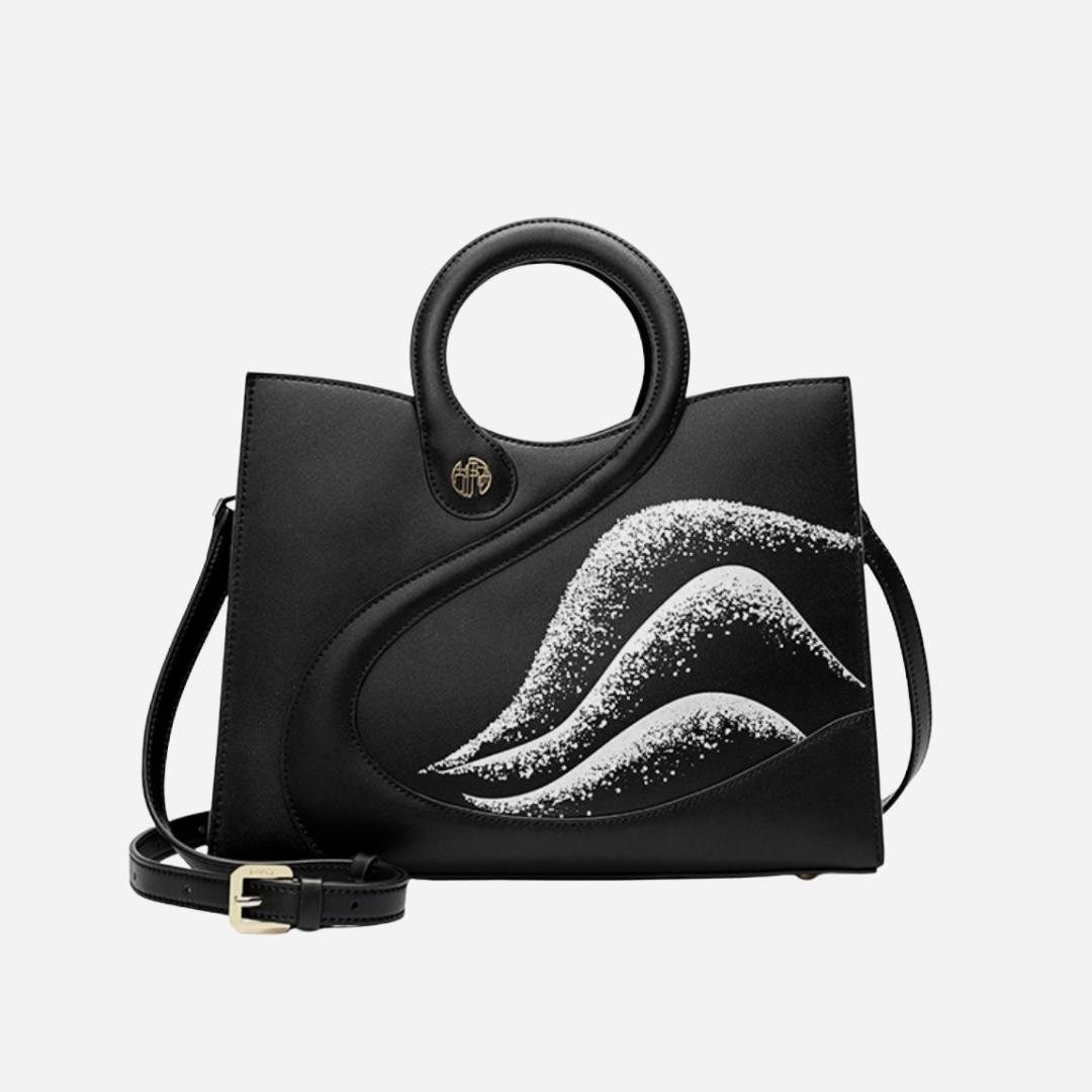 The Tang Imperial Ballad of the Black Feathers is a poetic tribute to elegance and unwavering love. Inspired by the rare black swan, a symbol of purity, loyalty, and eternal devotion, this series features fluid embroidery that mimics the gentle movement of feathers over rippling water. With graceful lines and a timeless silhouette, each bag embodies quiet confidence and refined beauty, blending Eastern cultural essence with modern fashion craftsmanship. The result is a design that sings a soft ballad of destiny and love; where loyalty never fades, and two hearts move as one.