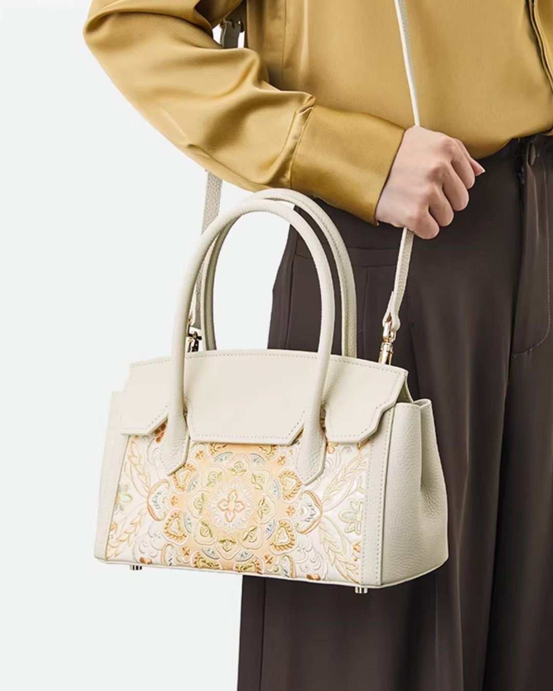 Adorned with hand-stitched embroidery by a nationally recognised master, inspired by a motif that has endured 2,000 years, and brought to life through the intricate Yun Brocade technique, it is the epitome of timeless elegance and rich heritage.
