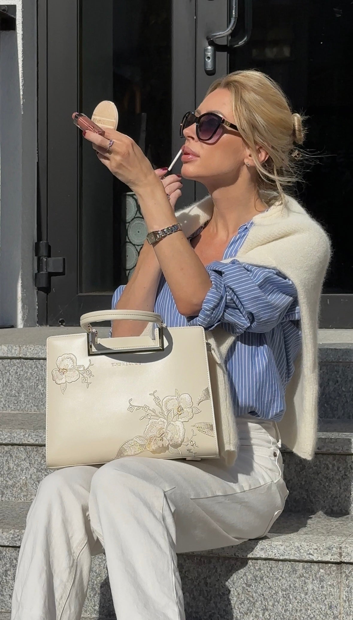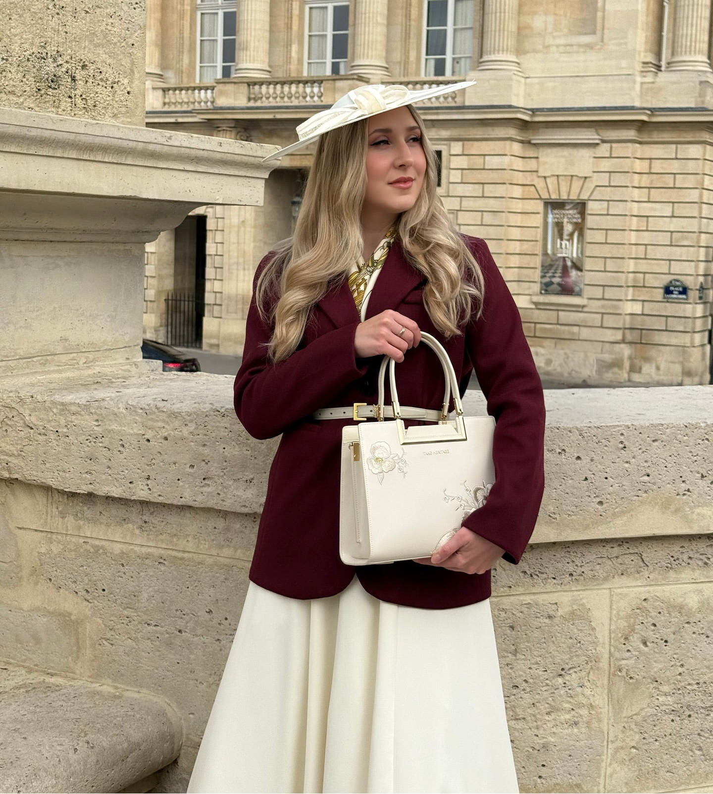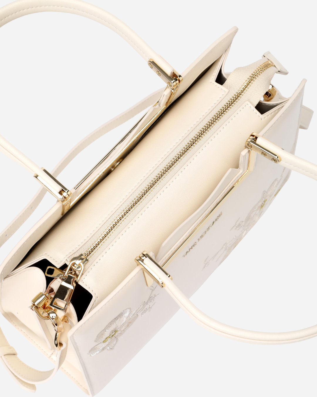Adorned with hand-stitched embroidery, crafted from supple premium cowhide leather, and accented with polished gold-tone hardware, it is the epitome of elegance and refinement.