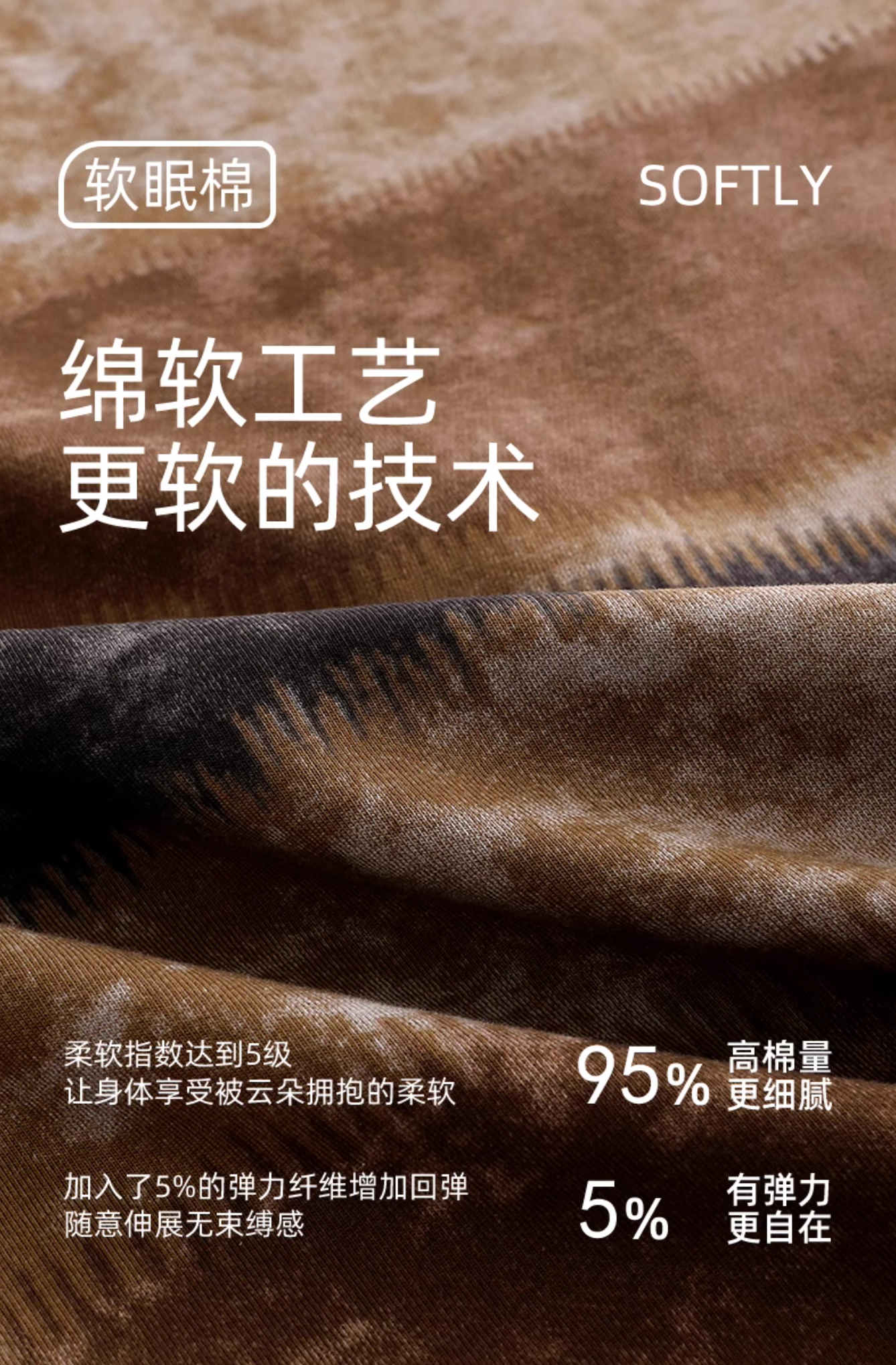 Earth-toned tie-dye patterns channel the rustic elegance of forests and stone, bringing artistic depth and a touch of wilderness into your homewear.